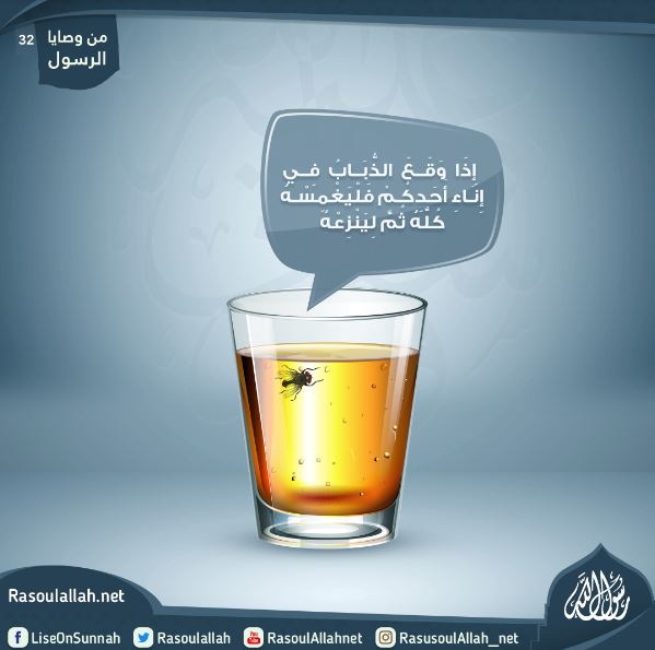 إِذَا وَقَعَ الذُّبَابُ فِي إِنَاءِ أَحَدِكُمْ فَلْيَغْمِسْهُ كُلَّهُ