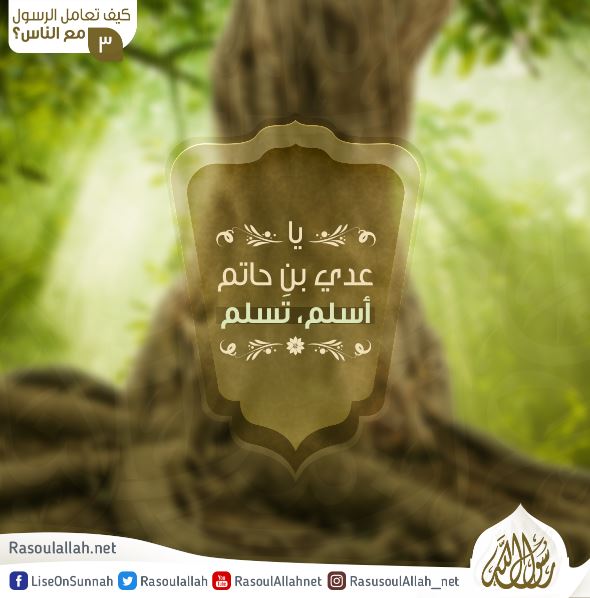 عندما وقعت أختُ عدي بن حاتم في أسْر المسلمين، عاملها رسول الله معاملة كريمة، وبقِيَت معززة مكرمة، ثم كساها النبي - صلَّى الله عليه وسلَّم - وأعطاها ما تتبلغ به في سفرها، وعندما وصلت إلى أخيها في الشام، شجَّعته على الذهاب لرسول الله - صلَّى الله عليه وسلَّم - فتأثَّر بنصيحتها وقدِم على المدينة[1].