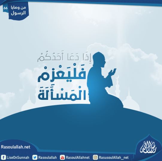 قَالَ رَسُولُ اللَّهِ صَلَّى اللَّهُ عَلَيْهِ وَسَلَّمَ "إِذَا دَعَا أَحَدُكُمْ فَلْيَعْزِمْ الْمَسْأَلَةَ وَلَا يَقُولَنَّ اللَّهُمَّ إِنْ شِئْتَ فَأَعْطِنِي فَإِنَّهُ لَا مُسْتَكْرِهَ لَهُ".