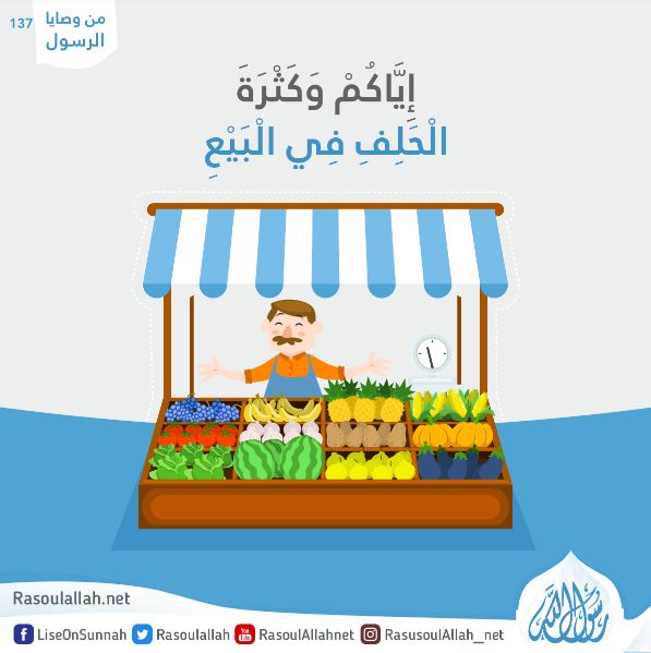 "إِيَّاكُمْ وَكَثْرَةَ الْحَلِفِ فِي الْبَيْعِ، فَإِنَّهُ يُنَفِّقُ ثُمَّ يَمْحَقُ".