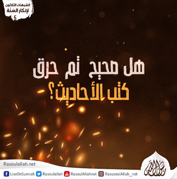 كما رددها بعضهم في كتب وضعوها خصيصاً لنسف السُّنَّة النبوية من الوجود. ثم أحاطوا بهالة جوفاء من التهويل، حتى ليخيل لقاريء مقالاتهم وكتبهم أن دخان الحرائق التي اشتعلت في كتب الحديث كاد يحجب ضوء الشمس، وأن رائحته ما تزال تزكم الأنوف.