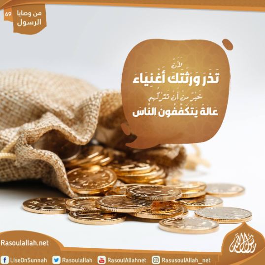 لَأَنْ تَذَرَ وَرَثَتَكَ أَغْنِيَاءَ خَيْرٌ مِنْ أَنْ تَترُكُهم عَالَةً يَتَكَفَّفُونَ النَّاسَ