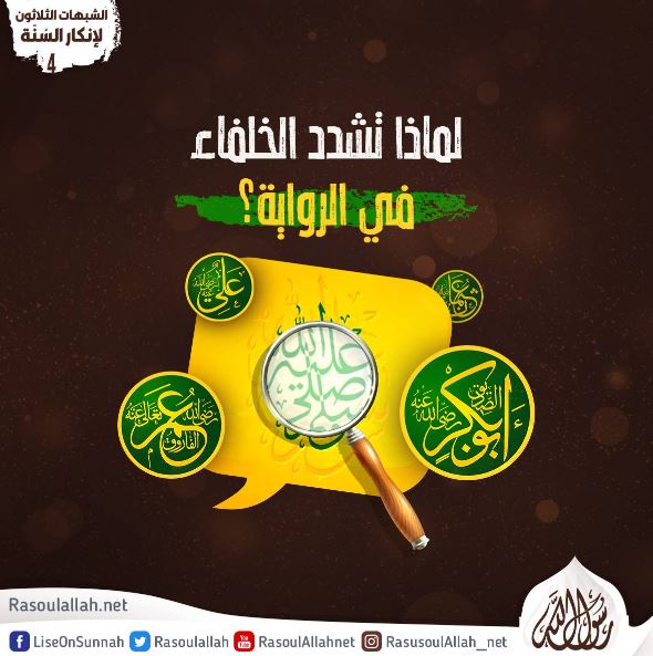 ففي مجال التشدد يتكئون كثيراً على أن الخلفاء، وفي مقدمتهم أبو بكر وعمر ما كانوا يقبلون الحديث إذا سمعوه من راو واحد، حتى يؤيده راو ثان سمع من رسول الله صلى الله عليه وسلم مثلما سمع الراوي الأول.