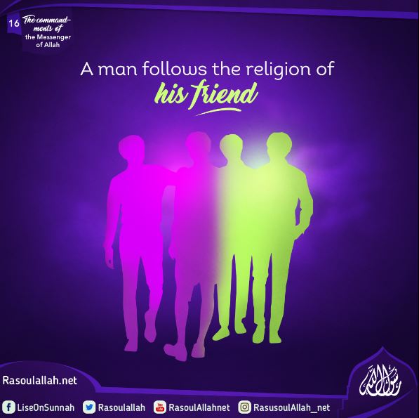 "A man follows the religion of his friend, so let one of you look at whom he mixes with.) Mu`ammil one of the narrators has a different wording; look at whom he befriends."