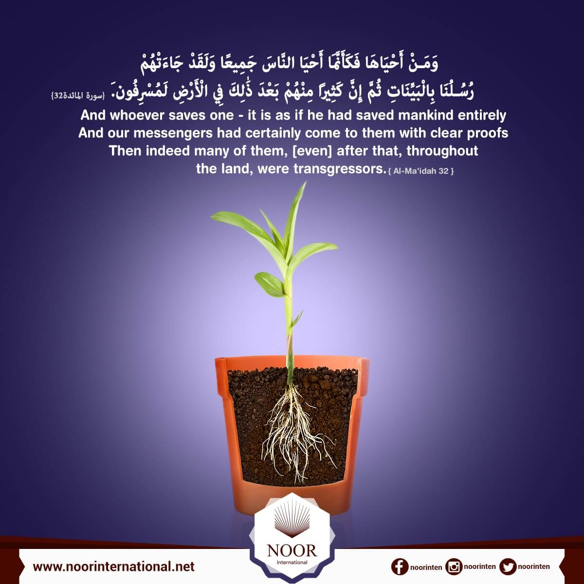 Because of that, We decreed upon the Children of Israel that whoever kills a soul unless for a soul[1] or for corruption [done] in the land[2] – it is as if he had saved mankind entirely. And Our messengers had certainly come to them with clear proofs. Then indeed many of them, [even] after that, throughout the land, were transgressors.[4]