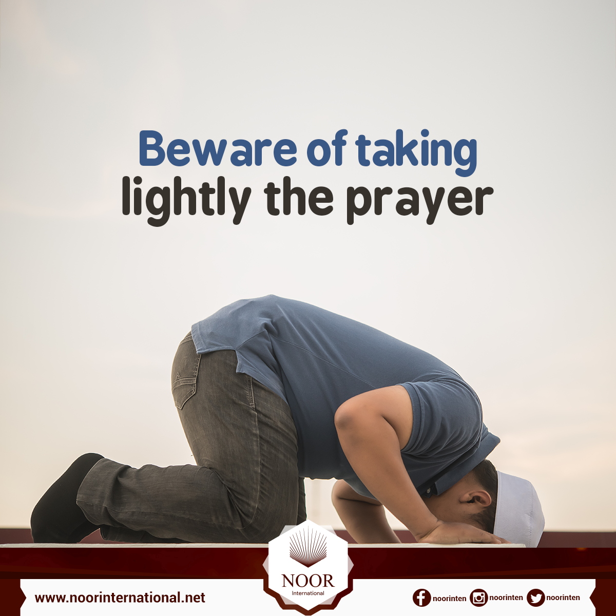 One of the greatest calamities of our time is that many people take lightly the matter of prayer; they do not establish it properly or maintain performing it in its due time.