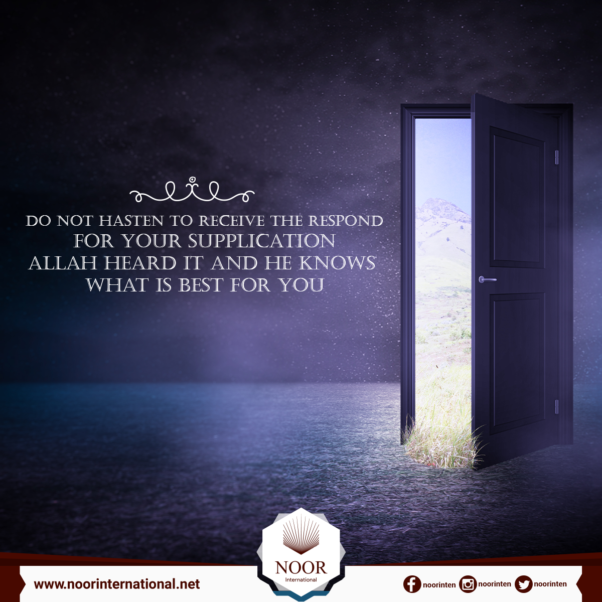 Do not hasten to receive the respond for your supplication, Allah heard it and he knows what is best for you