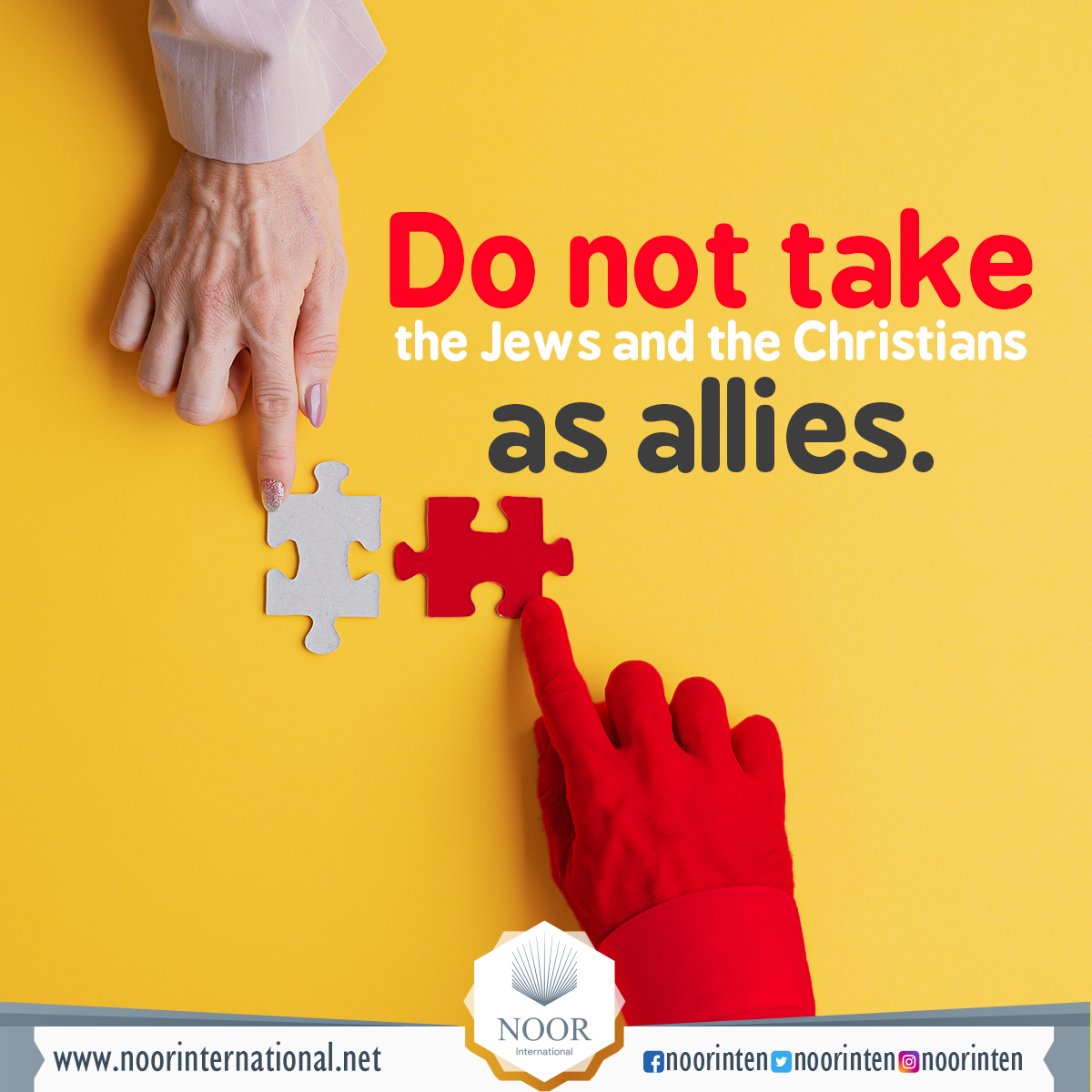 Allah commanded us not to take allies from the Jews and the Christians even if they are powerful and victorious.