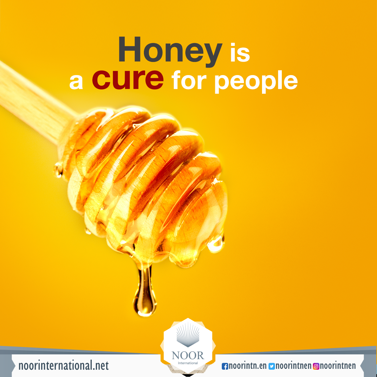 { And your Lord inspired to the bee, "Take for yourself among the mountains, houses, and among the trees and [in] that which they construct. Then eat from all the fruits and follow the ways of your Lord laid down [for you]." There emerges from their bellies a drink, varying in colors, in which there is healing for people. Indeed in that is a sign for a people who give thought. }