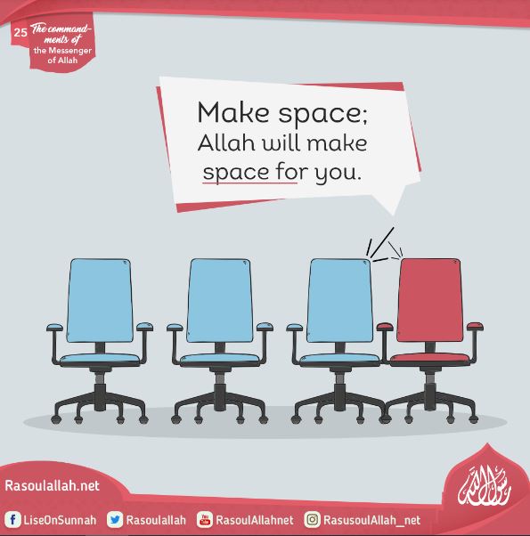 “A man should not ask another man to get up from his place in order to take his seat. But you should make room for each other and make space; Allah will make space for you.”
