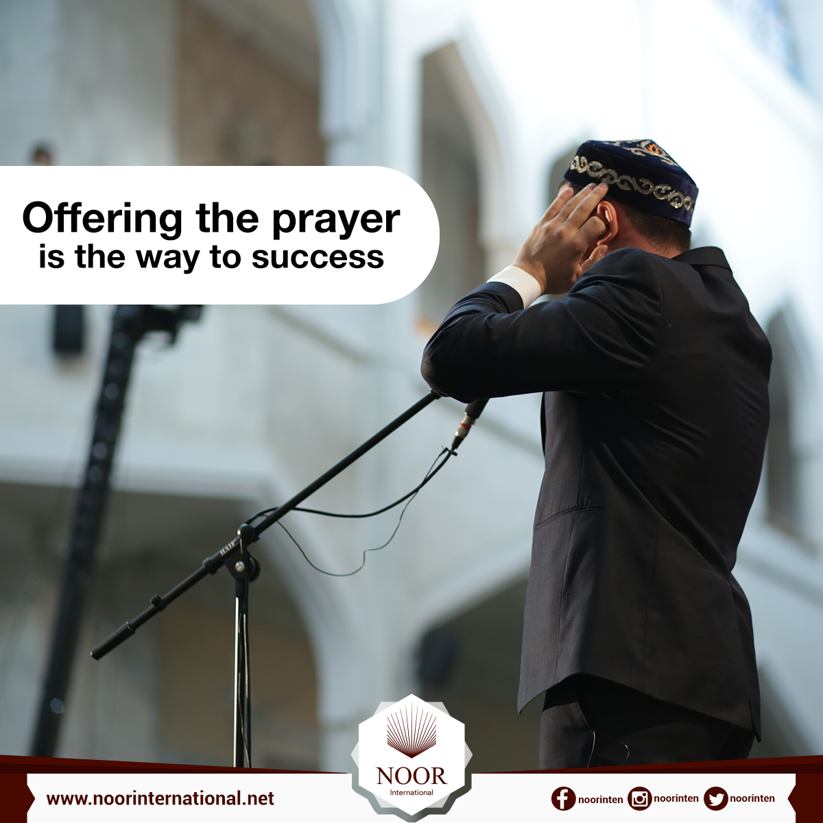 Before every obligatory prayer the Mu`athin ( the caller to prayer ) says: hasten to prayer – hasten to success. It is a reminder that you will not realize success in this world or in the Hereafter except by establishing the prayer properly.