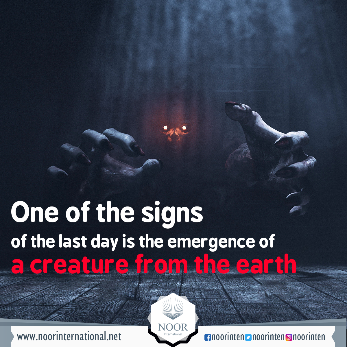 A creature will come out from the earth and speak to the people. It is one of the signs of the last day. Please note that this speaking is beyond the usual norms and that it is evidence of the truthfulness of what Allah has told in His Book