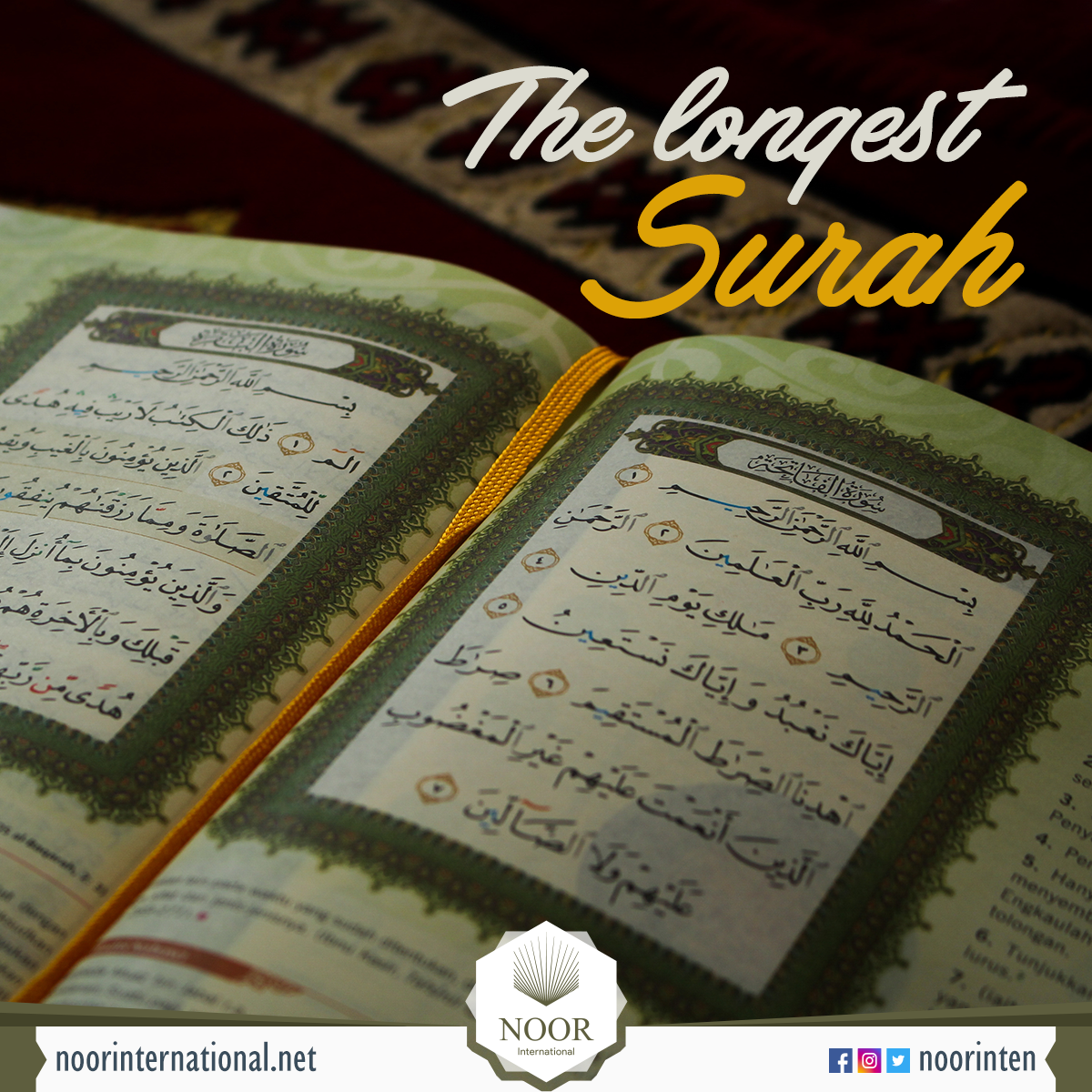 Is Al-Baqarah it consists of "286" verses. The shortest Surah is Al-Kawthar. It is composed of "3" verses.