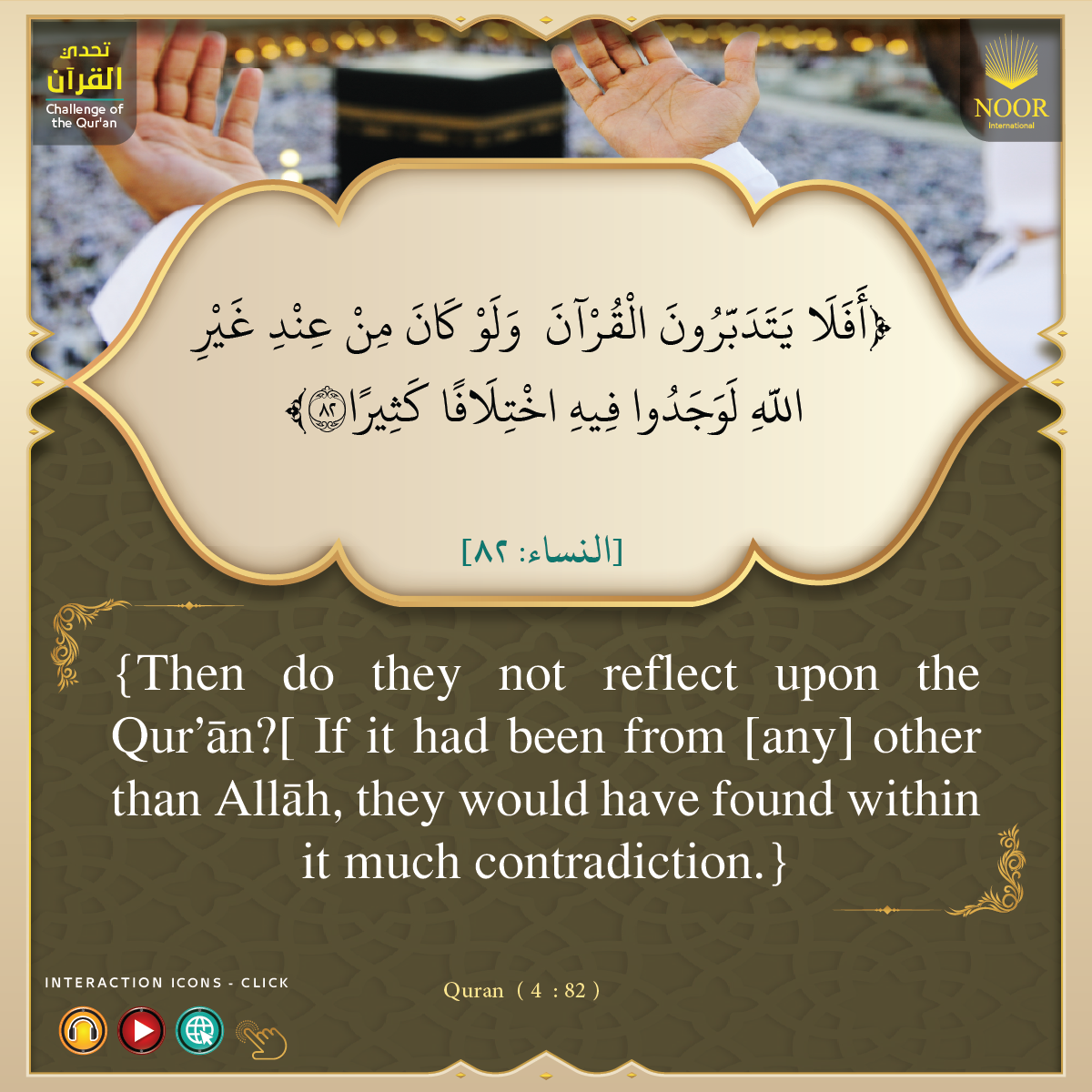 أَفَلَا يَتَدَبَّرُونَ ٱلۡقُرۡءَانَۚ وَلَوۡ كَانَ مِنۡ عِندِ غَيۡرِ ٱللَّهِ لَوَجَدُواْ فِيهِ ٱخۡتِلَٰفٗا كَثِيراٗ