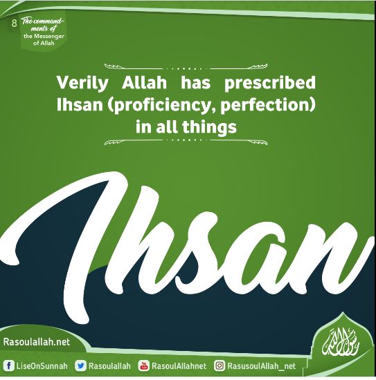 The Prophet (peace and blessings of Allah be upon him) started talking to the believers in this commandment, which is a wonderful example of applying Ihsan in every work one does, even if this act is apparently cruel, or when roughness is supposed to prevail.