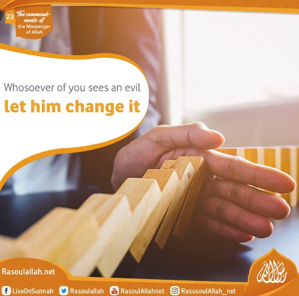 “Whosoever of you sees an evil, let him change it with his hand; and if he is not able to do so, then [let him change it] with his tongue; and if he is not able to do so, then with his heart — and that is the weakest of faith.”