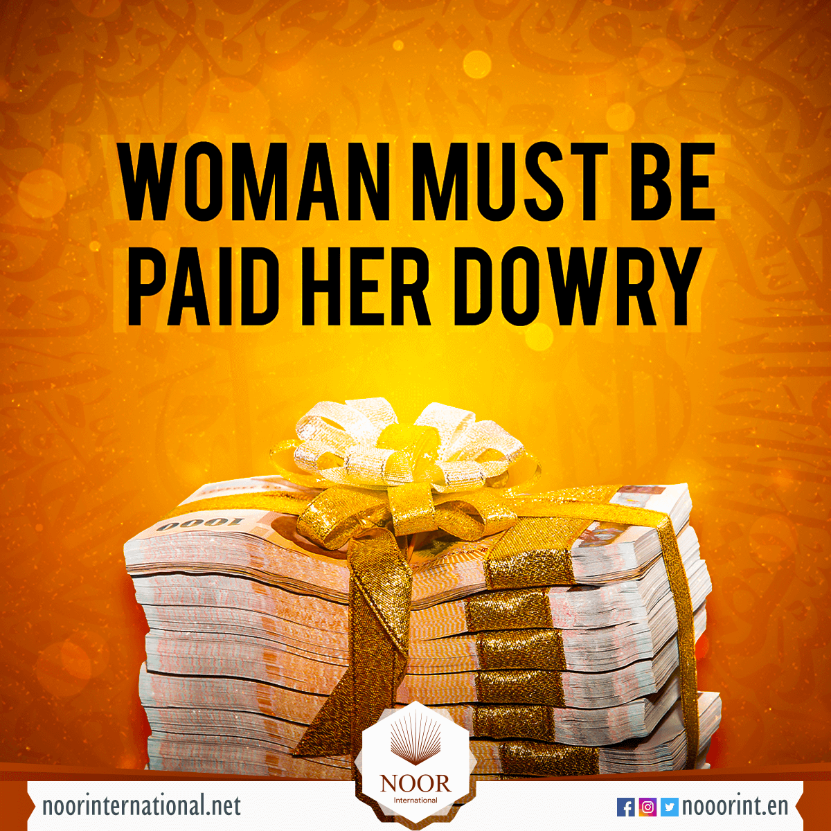 Women are valuable in the sight of Islam. Therefore, the husband is obliged to give her a dowry.