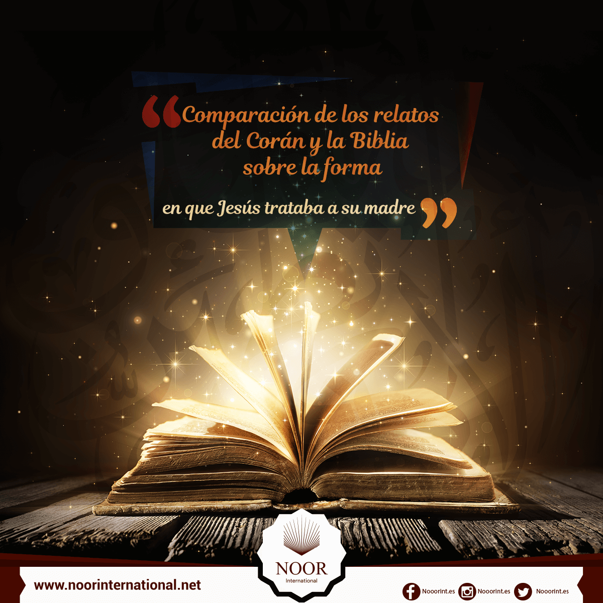 {Y me ha ordenado ser respetuoso y amable con mi madre y no ser arrogante ni rebelde.} [Corán19: 32]. Y en la Biblia: Y cuando querían vino, la madre de Jesús le dijo: No tienen vino. Jesús le dijo: Mujer, ¿qué tengo yo que ver contigo? mi hora aún no ha llegado.