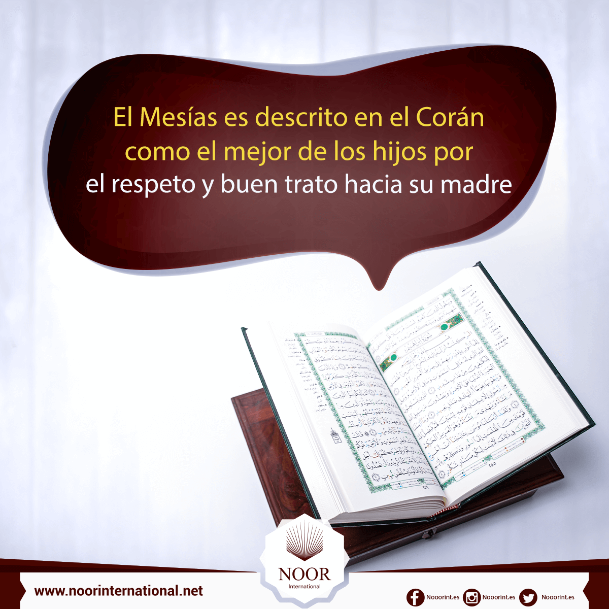El Mesías es descrito en el Corán como el mejor de los hijos por el respeto y buen trato hacia su madre