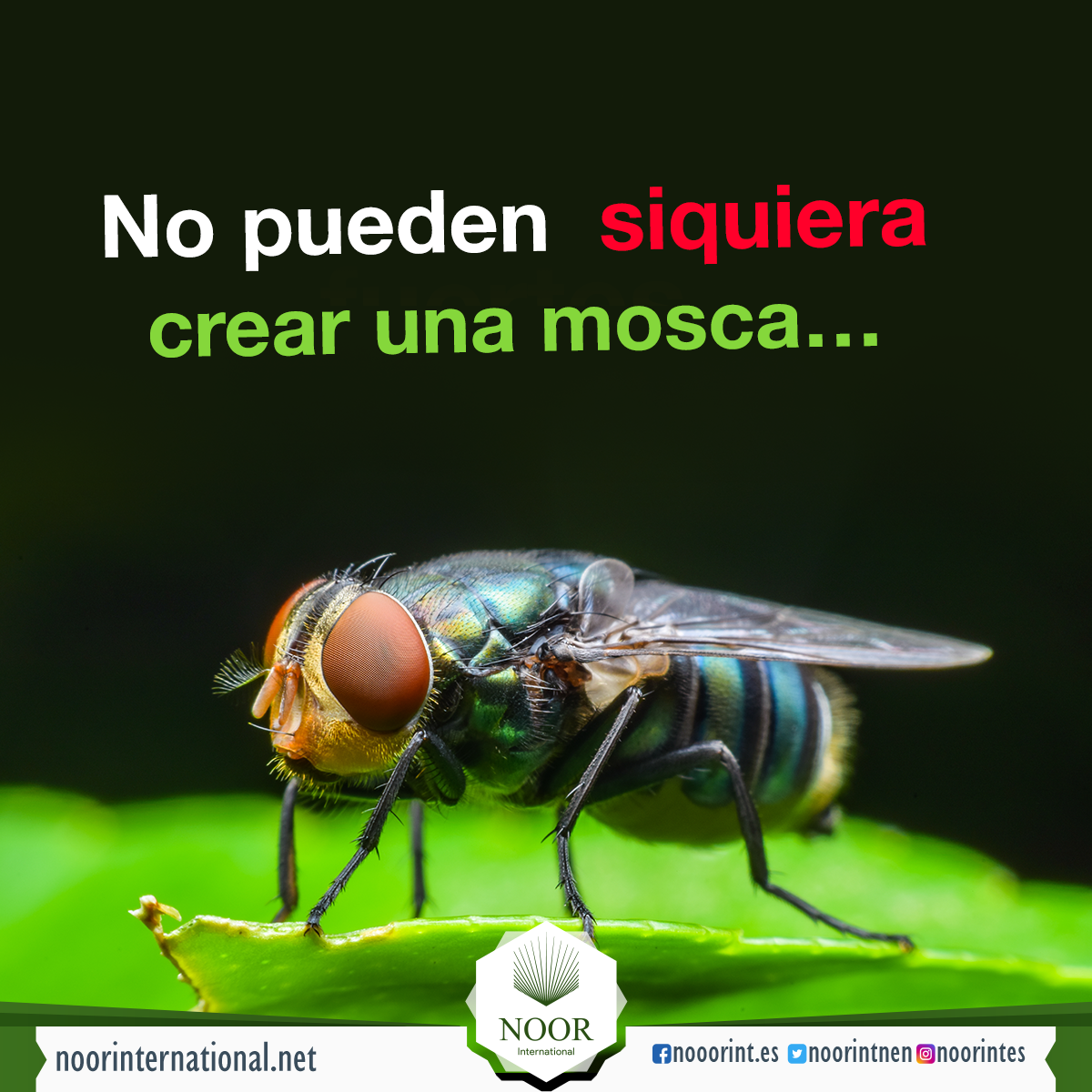 Una de las criaturas más débiles e insignificantes de la creación de Dios; sin embargo, aunque todos los seres humanos se pusiesen de acuerdo para crear una mosca, no podrían hacerlo.