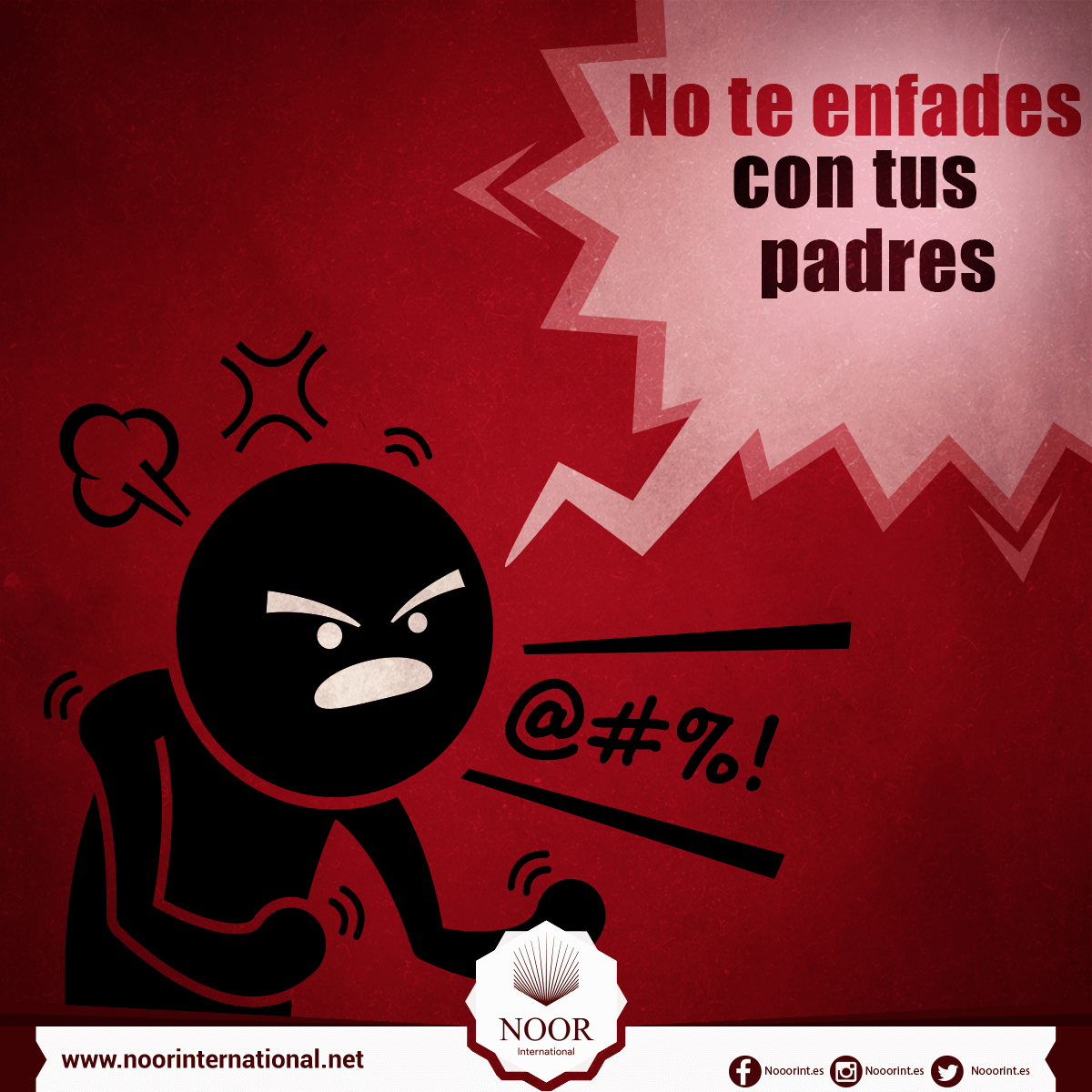 No te enfades con tus padres y no los maltrates, eso es lo que el Corán te ordena. Háblales con benevolencia y no les alces la voz.