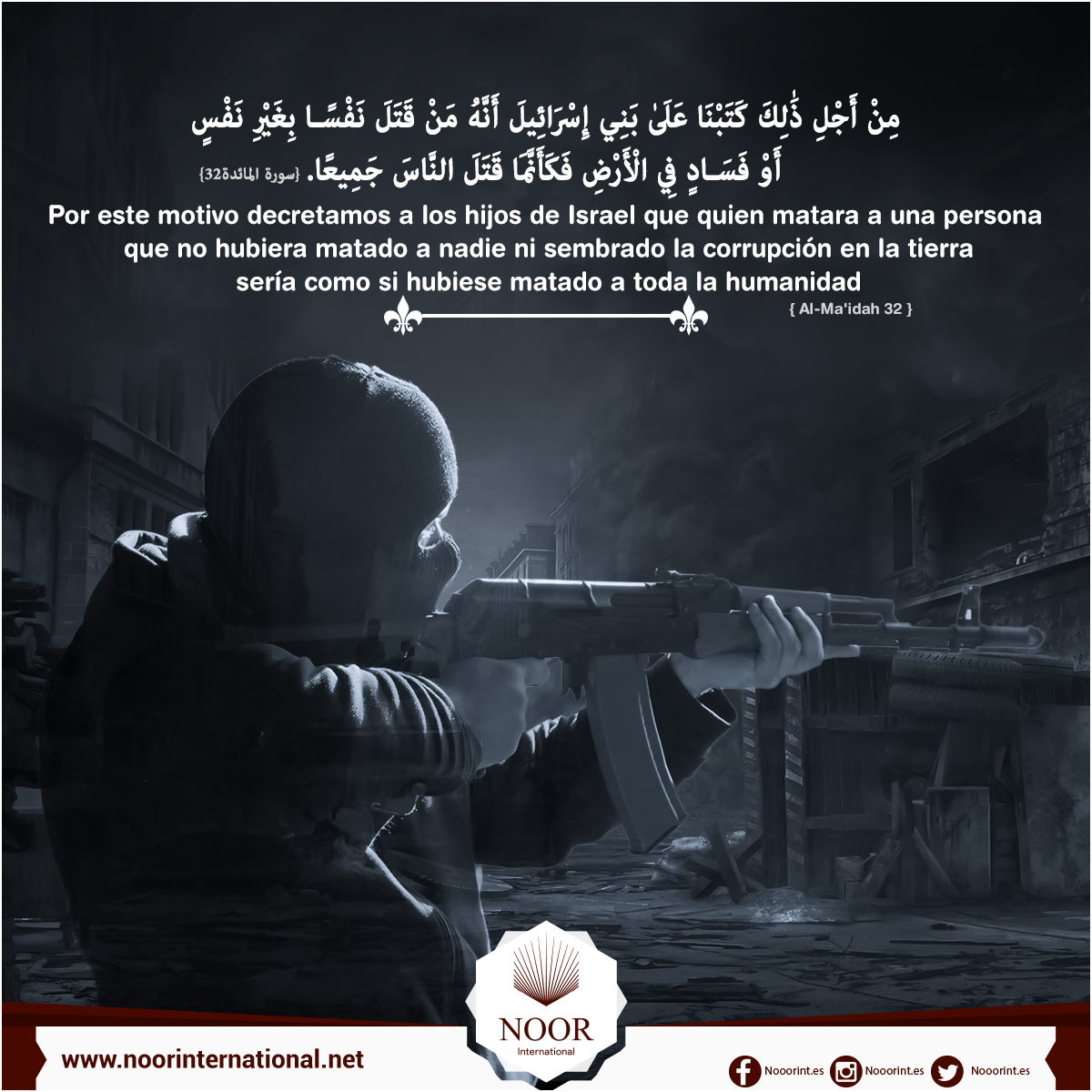 Por este motivo decretamos a los hijos de Israel que quien matara a una persona que no hubiera matado a nadie ni sembrado la corrupción en la tierra sería como si hubiese matado a toda la humanidad.