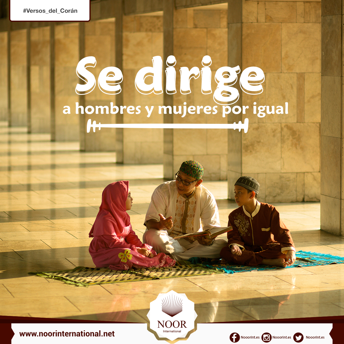 El Corán se destaca porque se dirige tanto a hombres como a mujeres por igual, es por eso que les impone las mismas obligaciones y les promete la misma recompensa. En el Corán se encuentran capítulos y versos que están especialmente dedicados a tratar asuntos exclusivos de las mujeres.