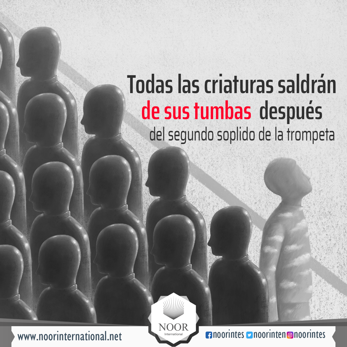 Cuando se sople la trompeta, lo cual desencadenará la resurrección y el juicio, todas las criaturas saldrán de sus tumbas y se dirigirán rápidamente hacia el encuentro con Su Señor para que los juzgue y les dé lo que les corresponde.