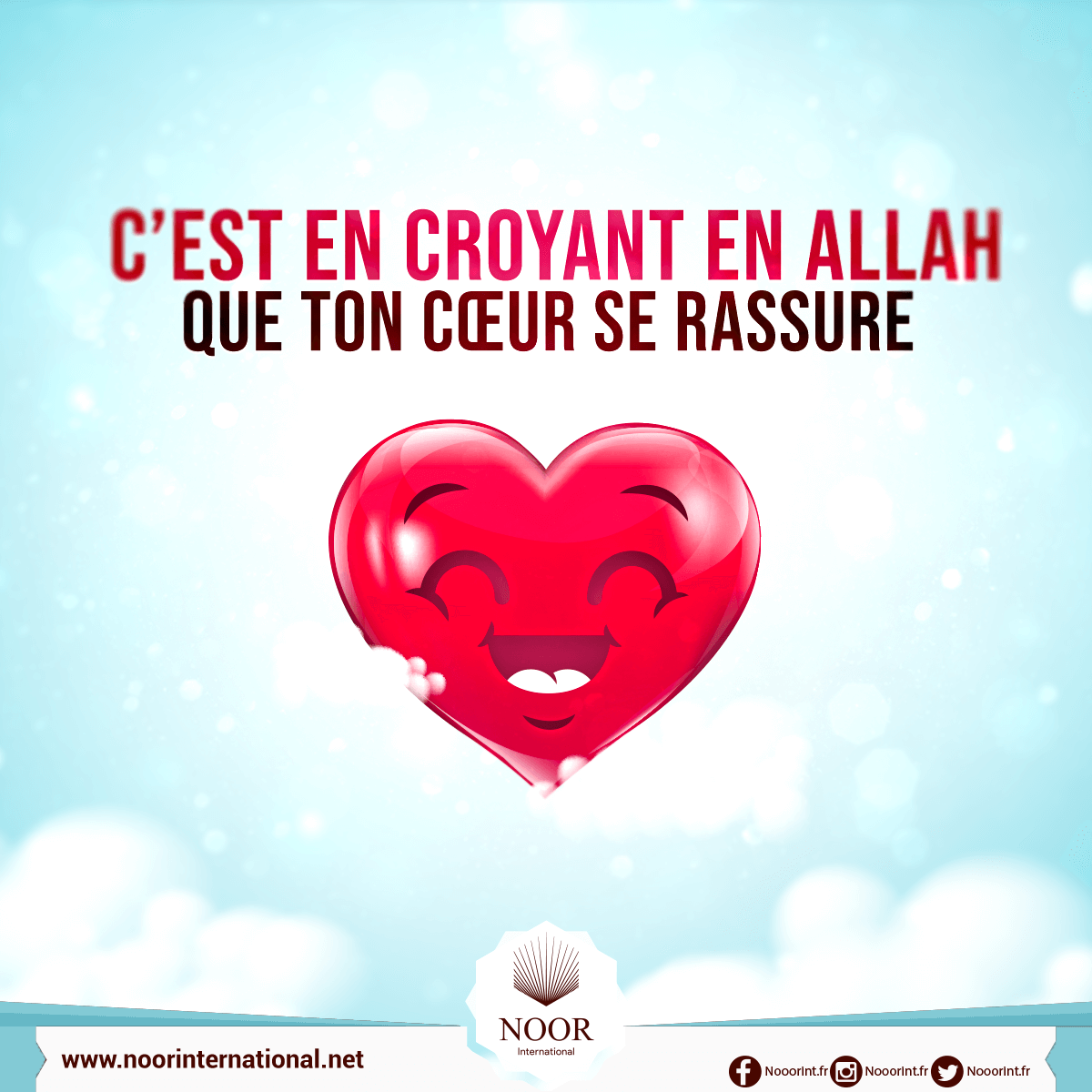 Allah, exalté soit-Il a dit: Ceux qui ont cru et dont les coeurs s’apaisent à l’évocation d’Allah, car n’est-ce pas à l’évocation d’Allah que les coeurs s’apaisent ? (Ar-Râ’ad, Le Tonnerre, 28)