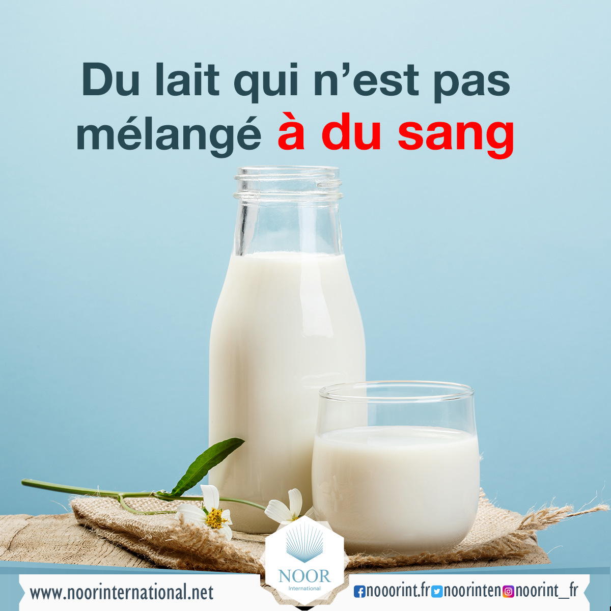 Parmi les bienfaits dont Allah nous a gratifiés, il y a le lait, qu’Il fait sortir du ventre des bestiaux sans mélange aucun. Comment cela est-il possible ? Cela l’est par la volonté d’Allah.