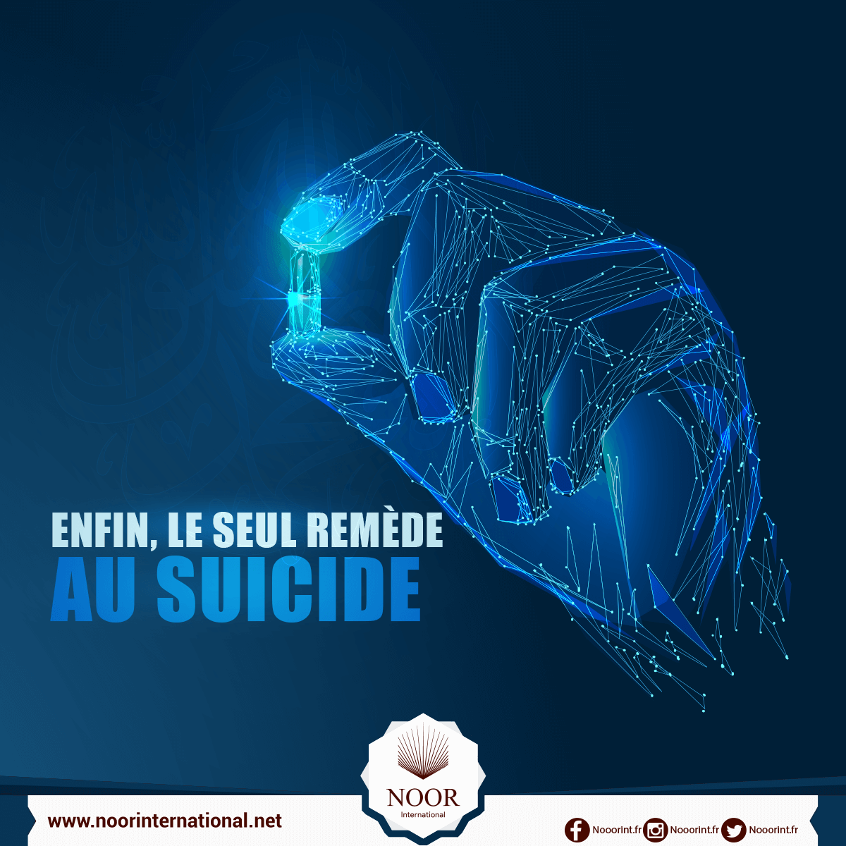 Tout être humain est amené à connaître des moments d'affliction et de détresse pour diverses raisons, telles que la pauvreté, la maladie, l'injustice ou l'échec. Ces mêmes raisons peuvent le pousser au suicide . Cette envie d'autodestruction est due au fait qu'il ne croit pas qu'il est appelé à retourner à son Créateur qui l'a créé à partir du néant. Il n'y a pas d'autre remède au suicide que la croyance en Allah, Ses anges, Ses Livres sacrés, Ses prophètes, au Jour Dernier, et au destin avec ce qu'il comporte comme bien et comme mal