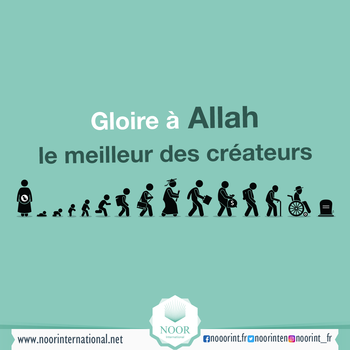 Nous avons créé l’homme à partir d’une essence d’argile, Nous en avons alors fait une goutte de sperme placée dans un réceptacle sûr. Puis de cette goutte, Nous avons fait un grumeau de sang, et du grumeau une masse de chair, et de la masse, des os. Nous avons ensuite revêtu les os de chair et en avons fait une créature autre. Béni soit Allah, le Meilleur des créateurs ! Puis, après cela, vous aurez certainement à mourir. Et au Jour de la Résurrection, vous serez ressuscités.