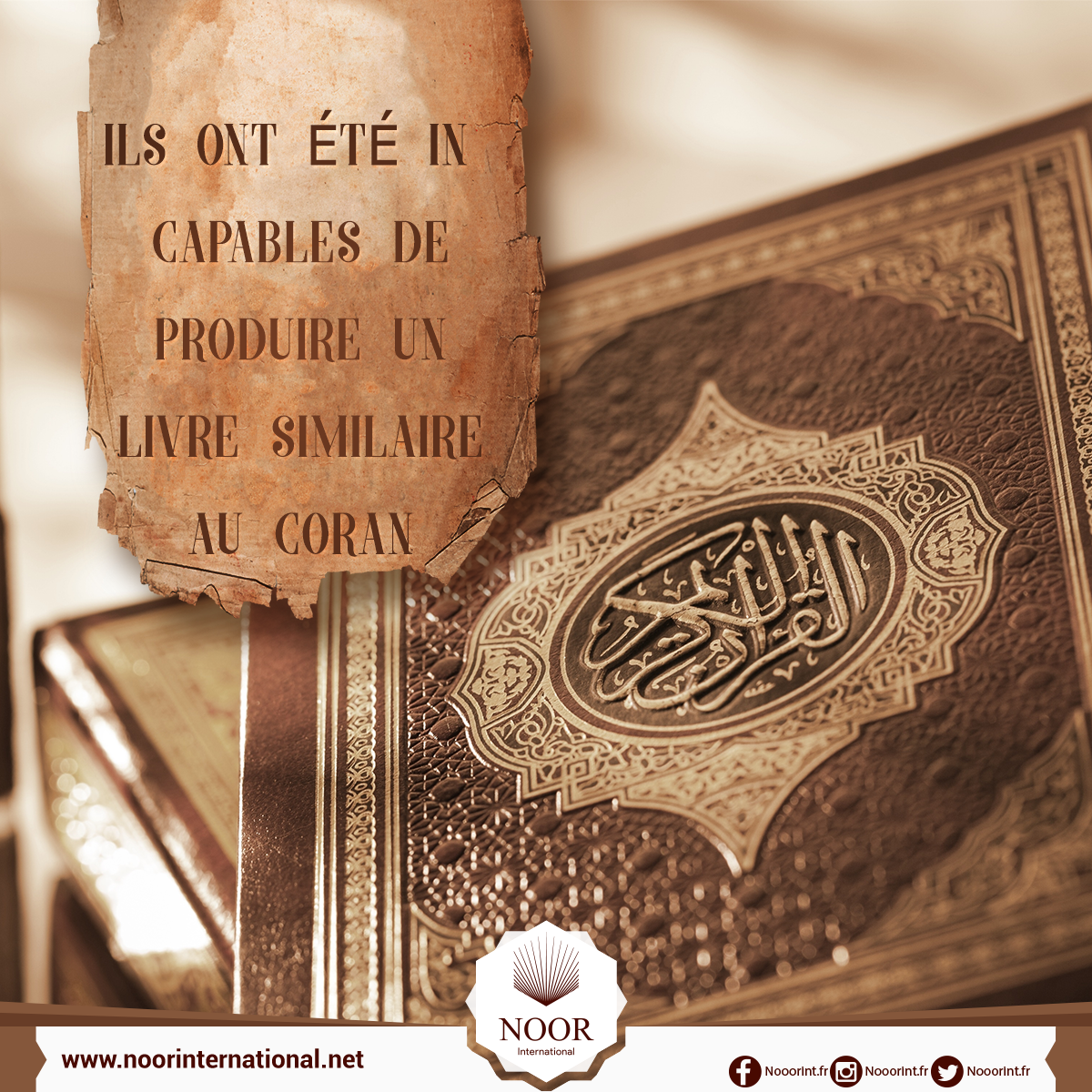 , et que les gens doués d'éloquence et maîtres de la magie du verbe n'aient pas été rares dans la Péninsule arabique , il ne s'en n'est pas trouvé un seul pour produire quoi que ce soit qui égale le Coran. Ils ont combattu le Prophète par les armes, mais ont été incapables d'égaler la transcendance coranique. »