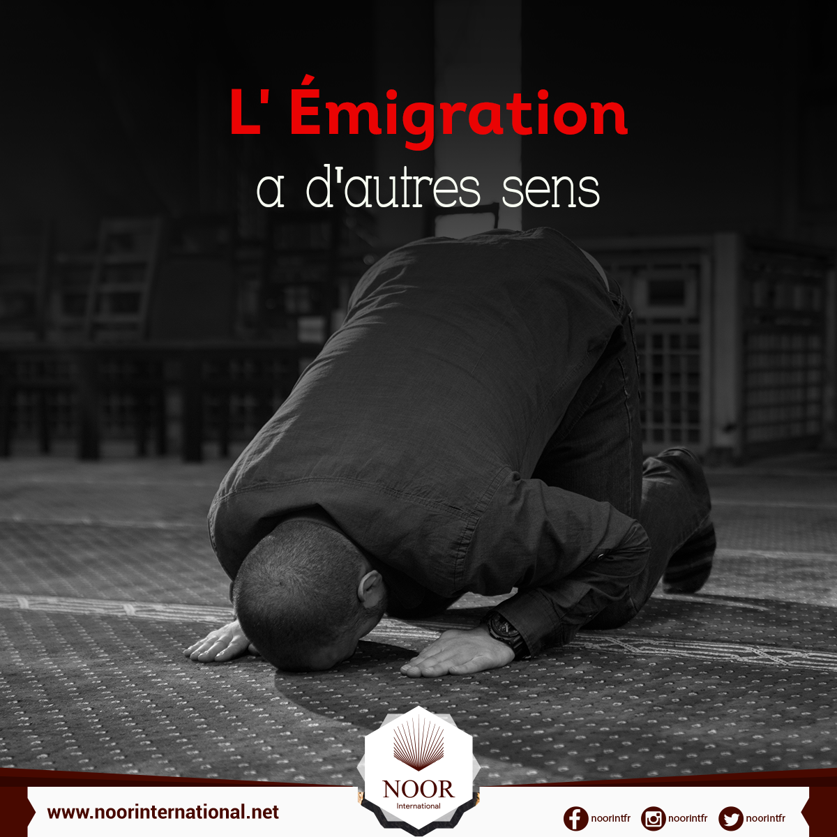 L' Émigration n'est pas uniquement le fait de quitter un endroit pour un autre. Elle comprend également celui de renoncer aux actes blâmables, à l'adoration de quiconque en dehors d'Allah, de s'éloigner des gens malfaisants et de s'abstenir de les fréquenter. L' Émigration est celle des cœurs vers Allah et celle de la sincérité qui permet de se diriger vers Lui secrètement et ouvertement.