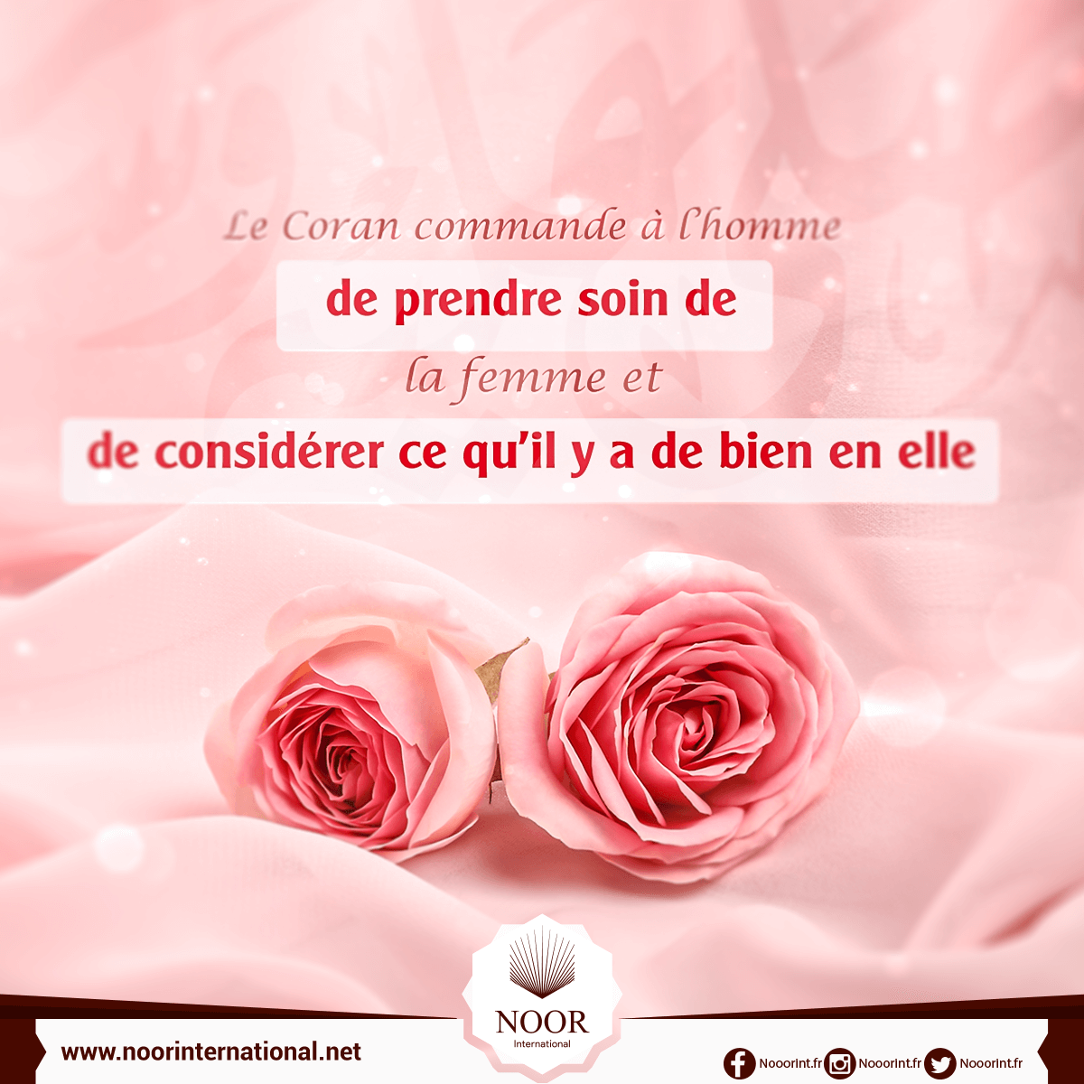 Le Coran commande à l’homme de prendre soin de la femme et de considérer ce qu’il y a de bien en elle