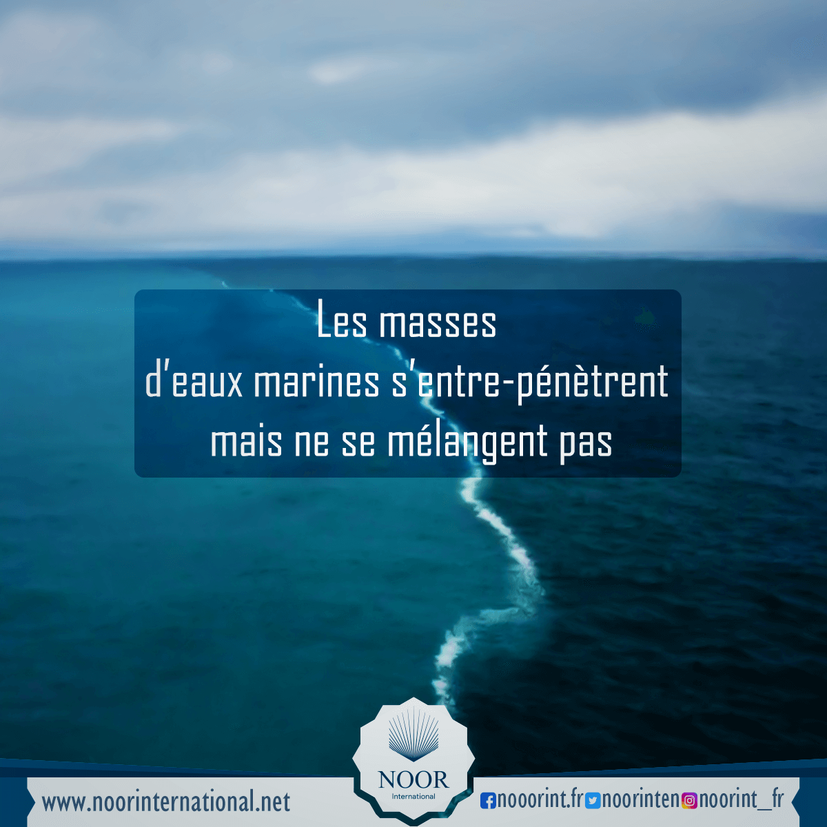 Le Coran a prouvé que les eaux salées des mers forment des masses différentes quant à leurs caractéristiques de salinité, de température et de densité.