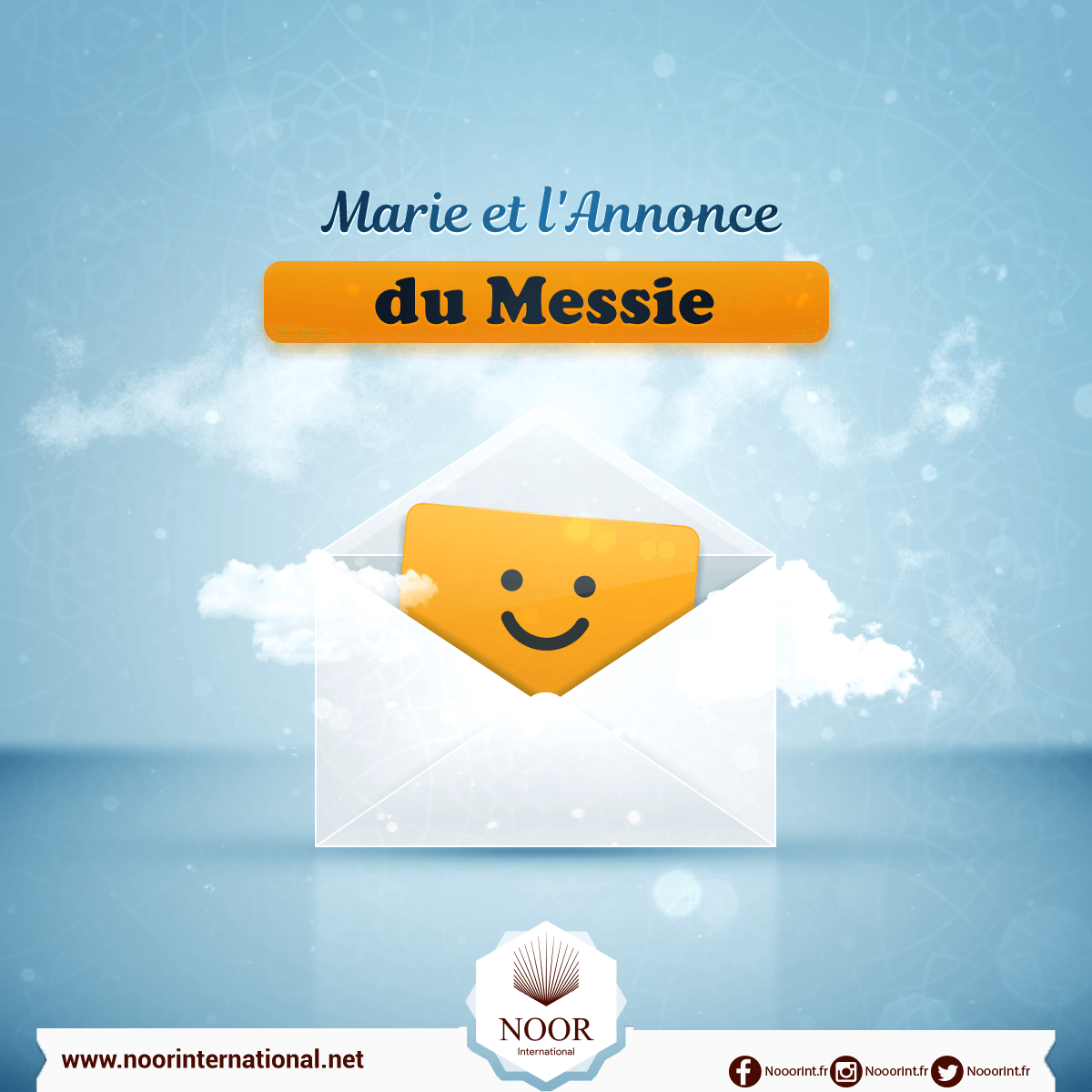 Évoque dans le Livre Marie, lorsqu’elle se retira loin de sa famille dans un endroit situé à l’est.- Elle dressa un voile entre elle et eux et Nous lui envoyâmes alors Notre Esprit (Gabriel) qui se manifesta à elle comme un humain à la forme parfaite.- Elle dit : « Je cherche refuge auprès du Tout Clément contre toi. Si seulement tu pouvais Le craindre ! » - « Je ne suis qu’un émissaire de ton Seigneur, et je suis venu te faire don d’un garçon (très) pur », répondit-il.