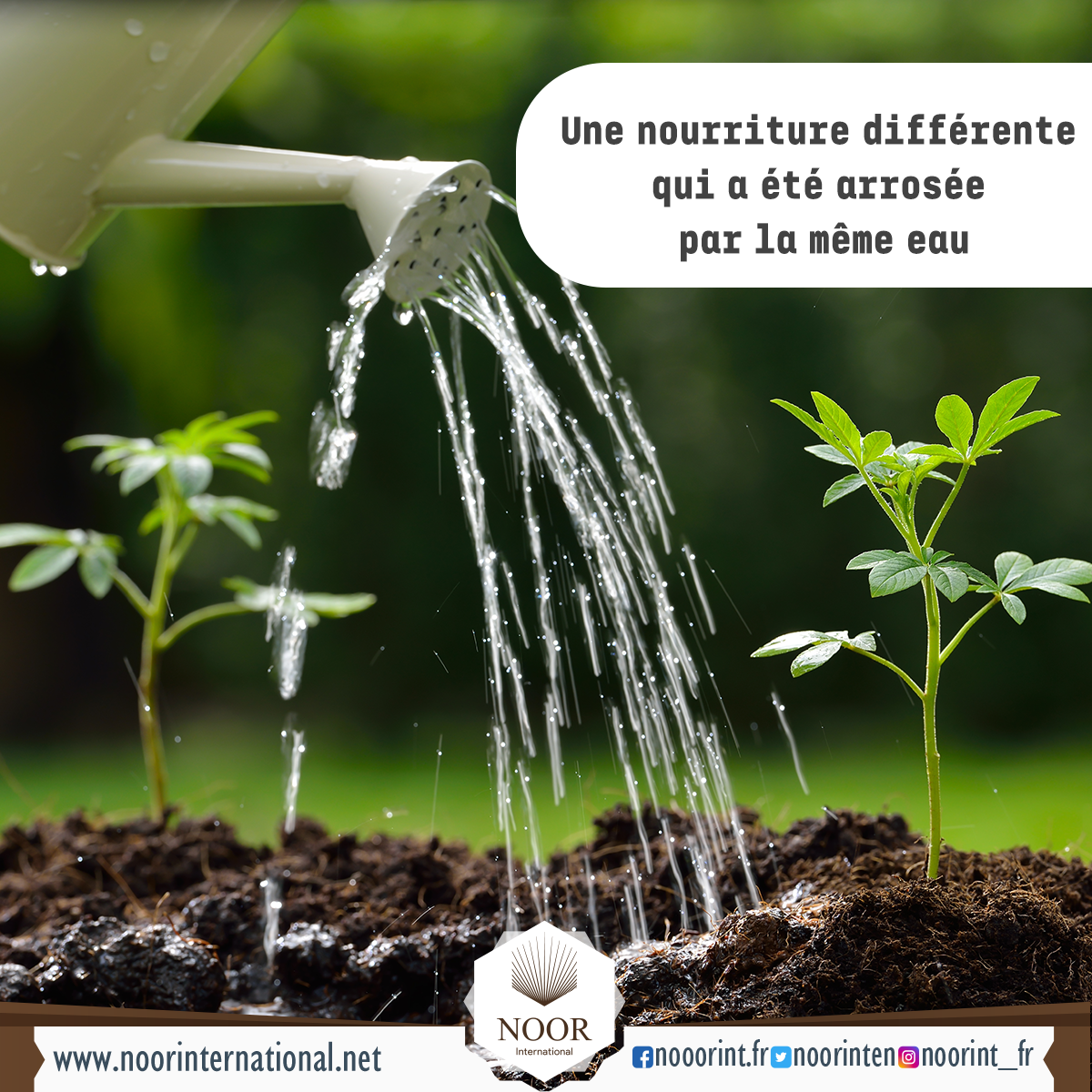Telle est la puissance d’Allah : une nourriture qui se différencie par le goût et la forme alors qu’elle a été arrosée par la même eau.