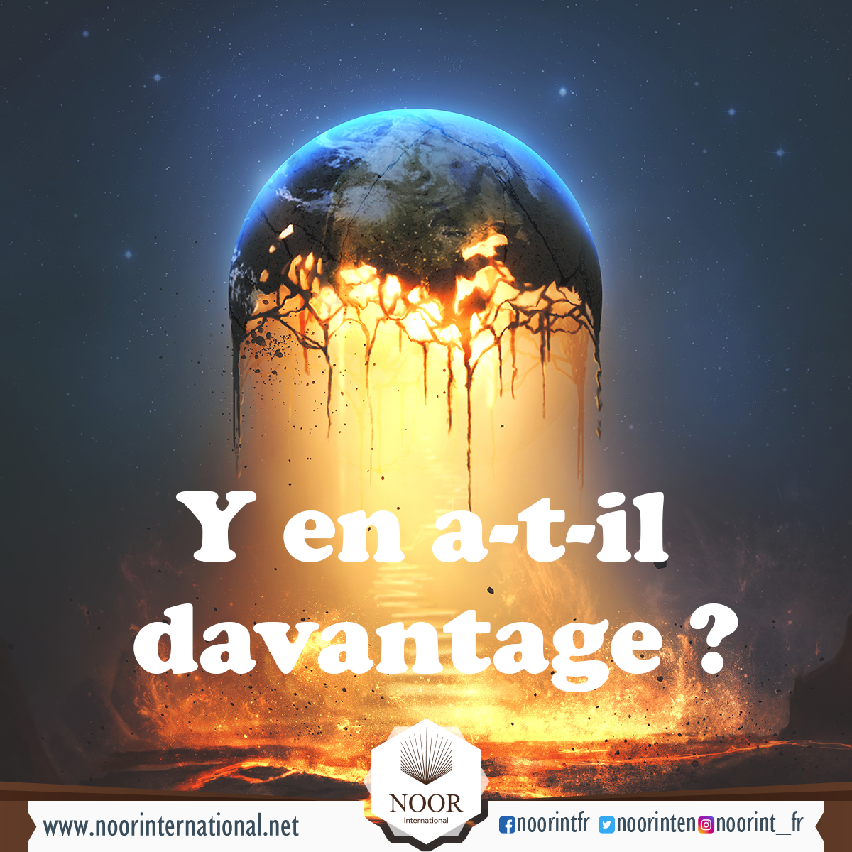 La Géhenne n’aura de cesse de demander davantage de mécréants en signe de sa colère pour son Seigneur, jusqu’à ce que le Seigneur de Puissance pose sur elle Son Pied qui est au-delà de toute comparaison. Elle se recroquevillera alors en s’écriant : «Cela suffit, cela suffit ! J’en ai suffisamment et en suis pleine ! »